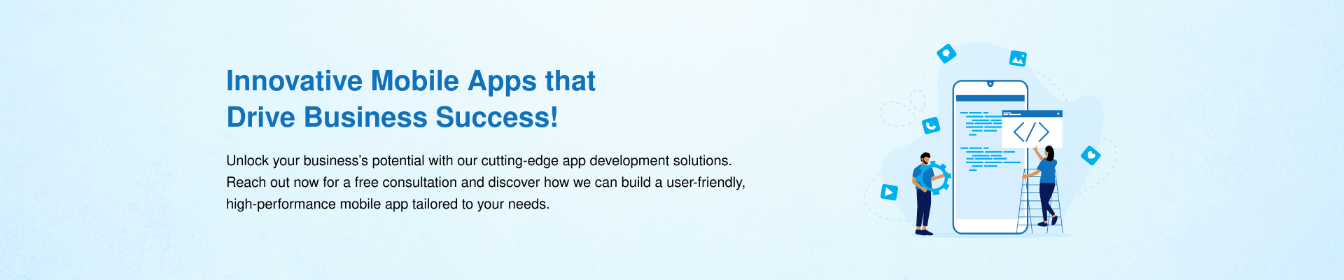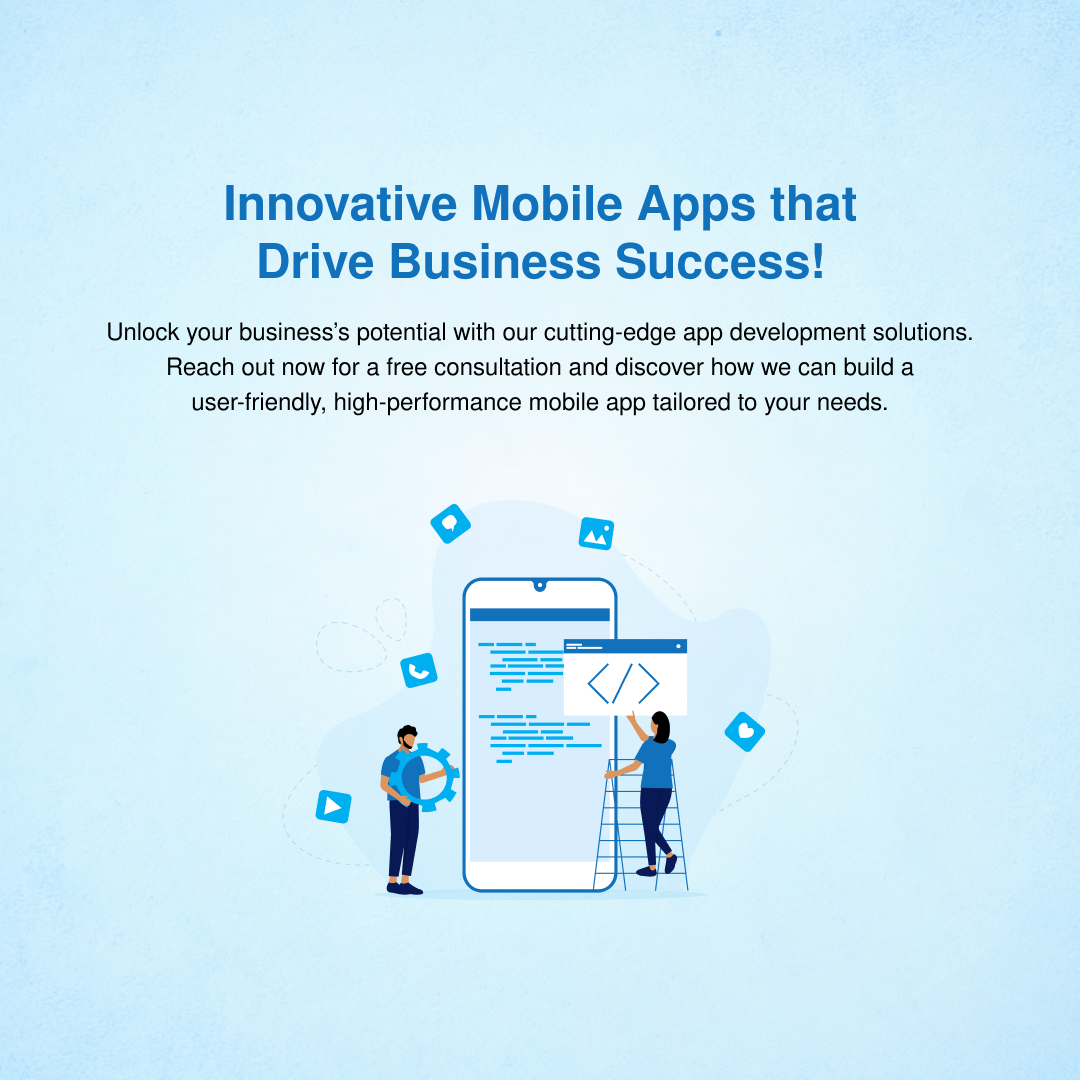 Unlock your business’s potential with our cutting-edge app development solutions. Reach out now for a free consultation and discover how we can build a user-friendly, high-performance mobile app tailored to your needs.